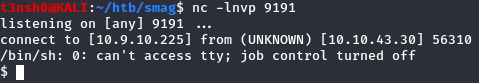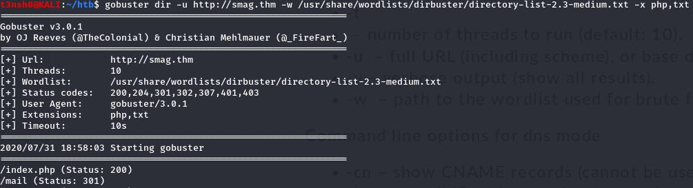 Now I wanna look at the webserver, but it’s under construction so nothing appears to be here… I added smag.thm to /etc/hosts, but nothing changed.
