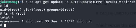 There is a privesc with this on gtfobins ( even three ), the first one won’t work because the machine isn’t connected to internet, the second one may work but I’ll try the third one because it fits on one line. And we are root ! Thanks you JakeDoesSec for this very nice room !